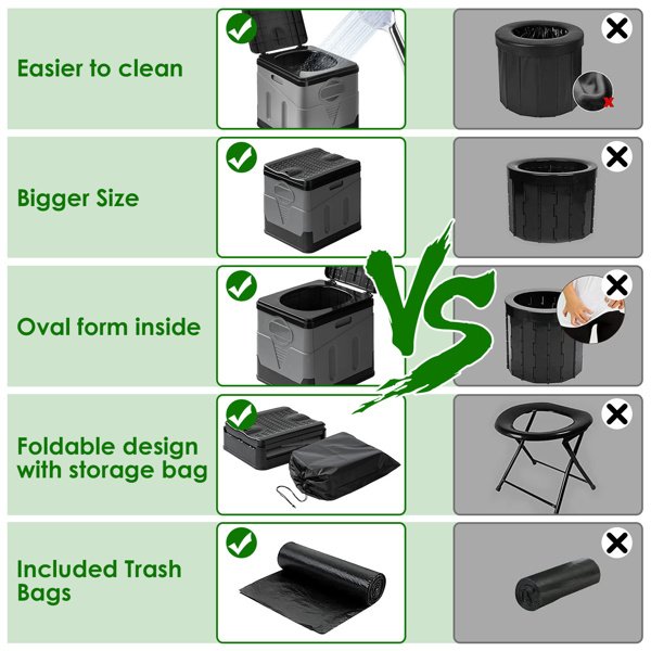 Easy To Clean: With convenient lid and included trash bags, this outdoor toilet is easy to clean and avoid unpleasant smell leaking condition. When finish, just take out the bag and throw it away, keep the toilet clean and tidy. Simply use water faucet or sprayer to rinse it.